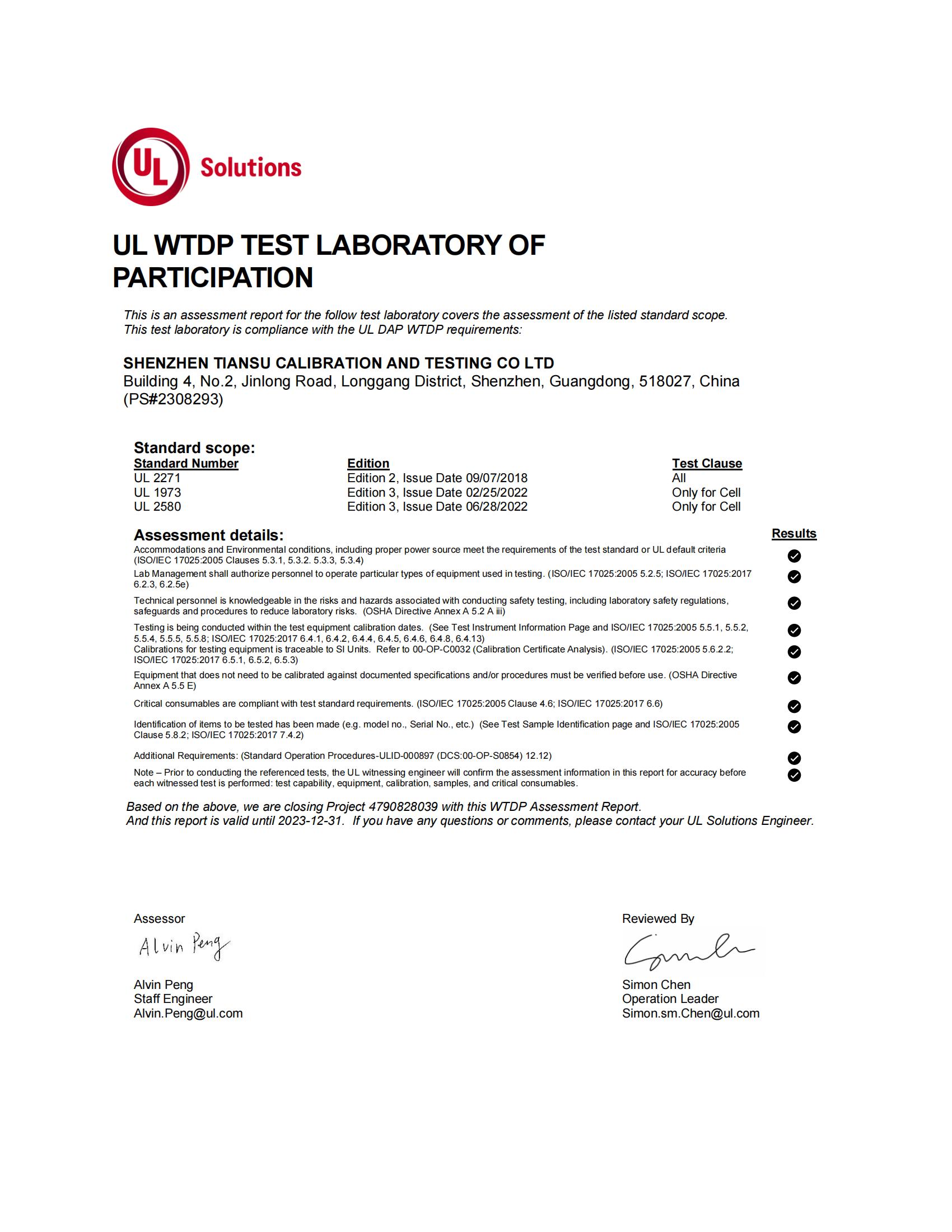 電池檢測專注于電池產(chǎn)品的全球認(rèn)證檢測,建立了設(shè)備齊全的電池測試實(shí)驗(yàn)室,包括:電池充放電測試實(shí)驗(yàn)室、電芯充放電測試實(shí)驗(yàn)室、移動(dòng)電源充放電測試實(shí)驗(yàn)室、可程式恒溫恒濕測試實(shí)驗(yàn)室、電池短路測試實(shí)驗(yàn)室、電磁式振動(dòng)測試實(shí)驗(yàn)室等。