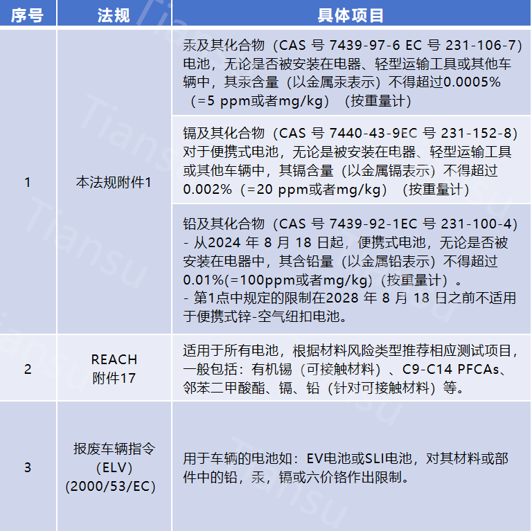 電動(dòng)汽車電池、可充電工業(yè)電池(>2kWh)、輕型交通工具電池均需要附帶含化學(xué)性能與耐久性參數(shù)的技術(shù)文檔。